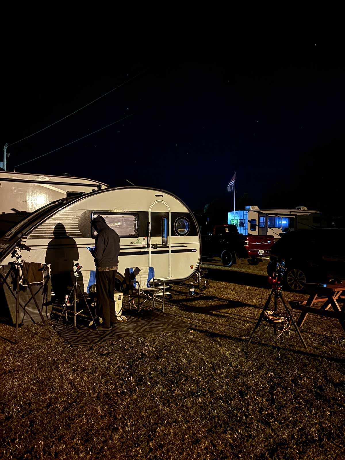 Camping under dark skies with no exterior camper light pollution (blinds up, lights off, automatic lights unplugged)