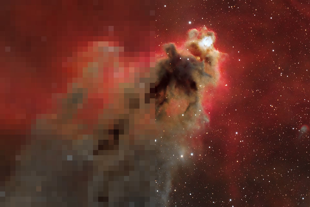 However, it may appear slightly soft overall because fine detail is spread across many small pixels, reducing signal strength per pixel. This can make the image look noisier at the pixel level and require longer integration to achieve a strong signal-to-noise ratio.